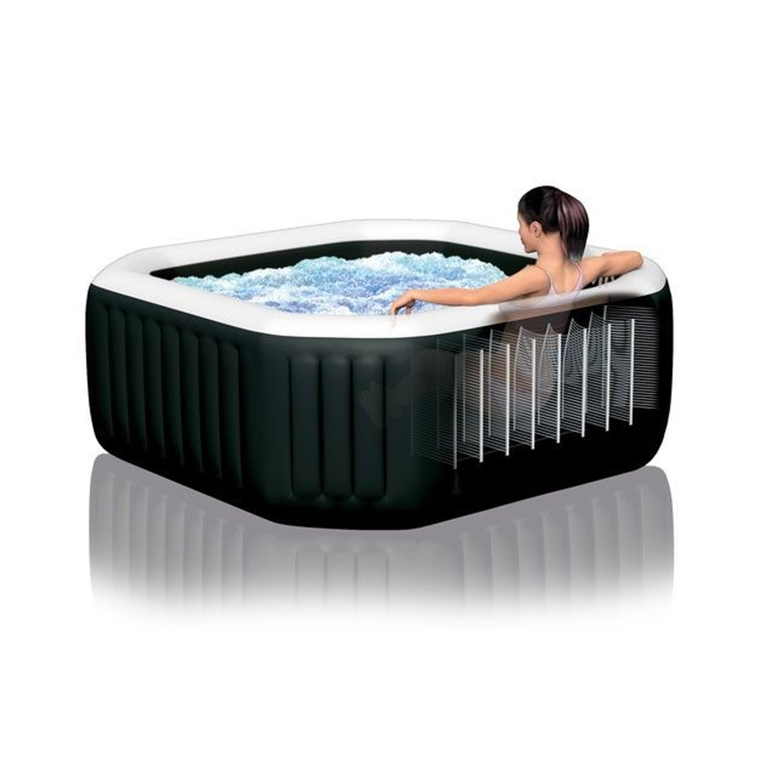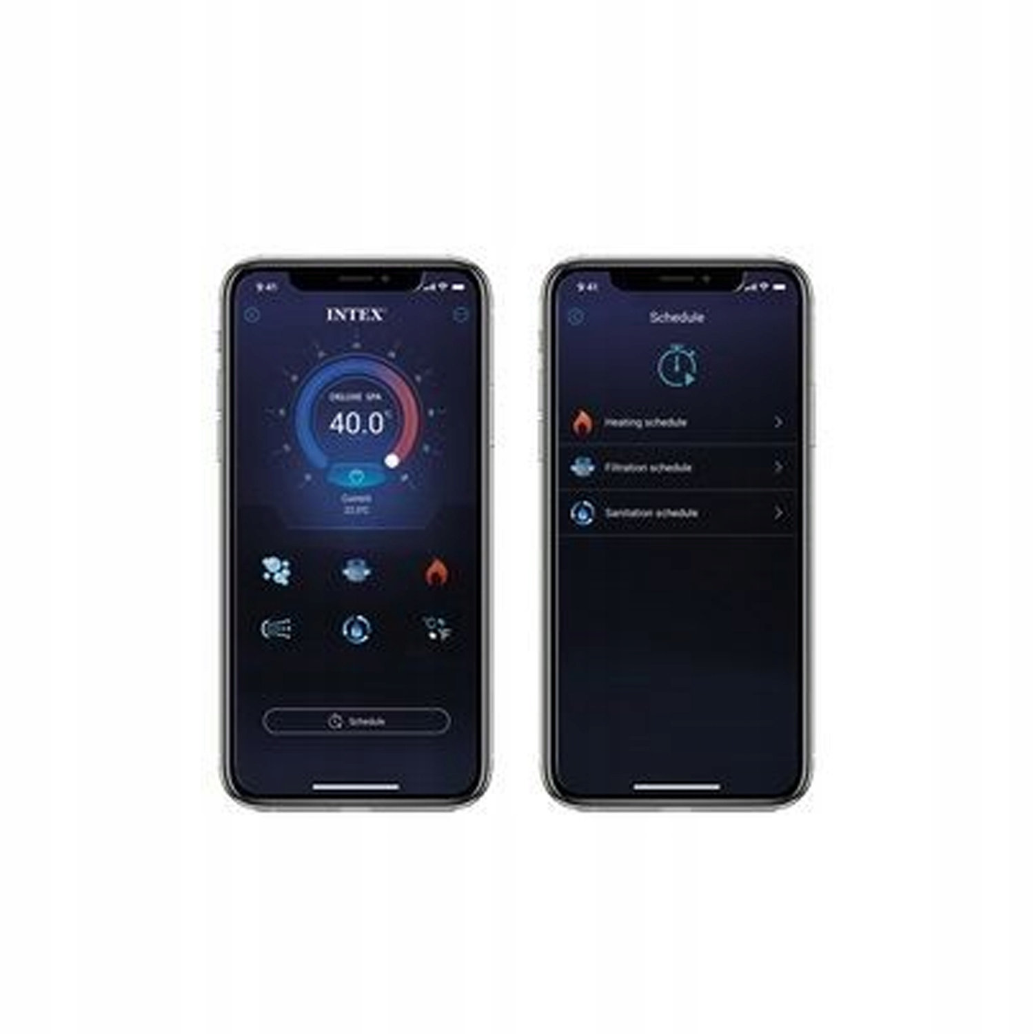 - Steuerung per Intex Spa Management App über WiFi (z. B. Fernprogrammierung von Filterzyklen, Wasserreinigung und Temperatureinstellung)