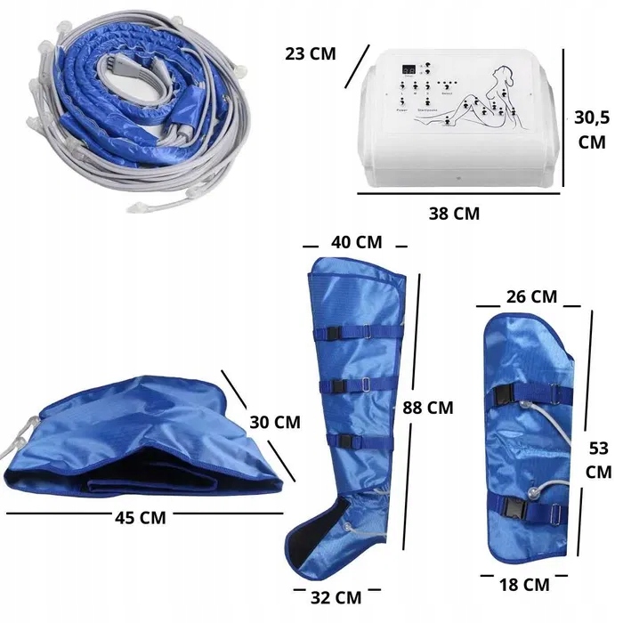 Das Gerät ist mit einer Druckregulierung ausgestattet, sodass die Intensität individuell angepasst werden kann. Das System ermöglicht eine Mehrzonenmassage, wodurch verschiedene Körperbereiche wie Beine, Bauch und Arme einbezogen werden können.