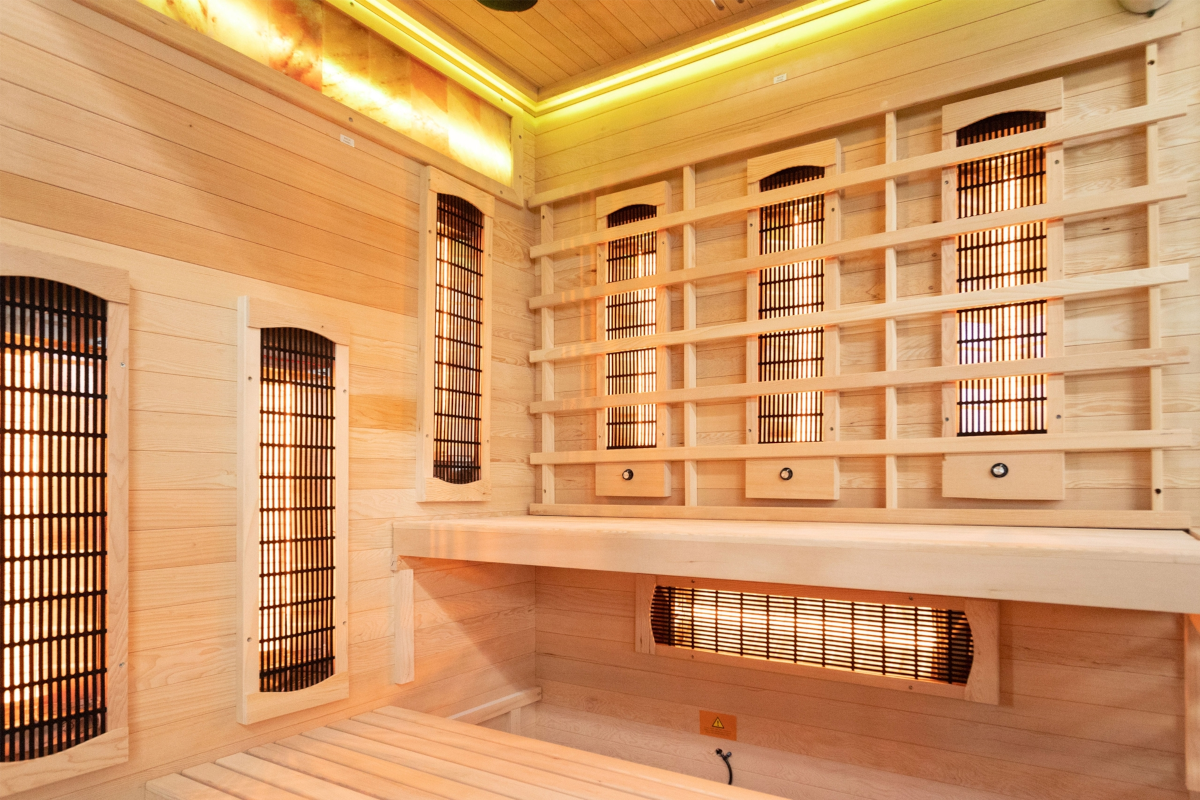 In unseren Saunen verwenden wir hochwertige Quarzstrahler Onyx Premium. Ihr Einsatz garantiert den vollständigen Wirkungsbereich der IR-C-, IR-B- und IR-A-Wellen.