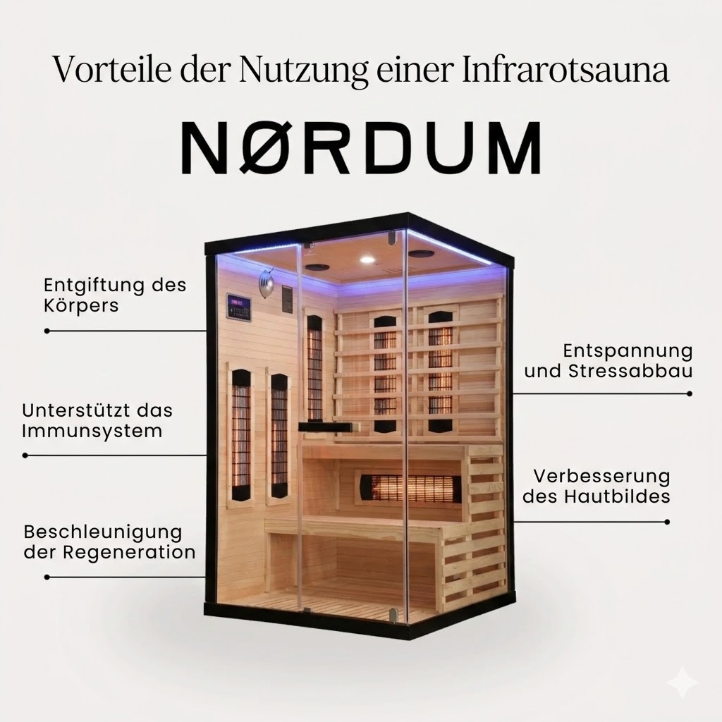 Die Infrarotsauna Nordum Basic 1-Personen Weiß ist mit Infrarotstrahlern ausgestattet. Du kannst sie sogar täglich nutzen, was Entspannung und Muskelkomfort fördert. Saunagänge können helfen, Spannungsgefühle zu reduzieren und das allgemeine Wohlbefinden zu verbessern. Regelmäßige Sitzungen unterstützen die Reduzierung der Sichtbarkeit von Cellulite und tragen zur Verbesserung des Hautbildes bei.