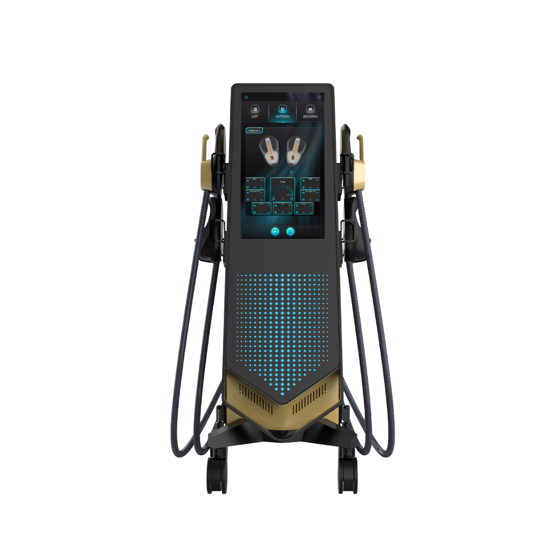 Ein leistungsstarkes Gerät für Anwendungen zur Muskelaktivierung. Die Möglichkeit, mehrere Applikatoren gleichzeitig zu nutzen, erleichtert die Arbeit im Studio deutlich.